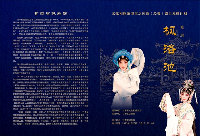 春启陇原,曲韵悠扬。2月28日至3月3日,省陇剧院将在甘肃黄河剧院推出陇剧开山之作《枫洛池》与新创佳作《大河东流》的连台演出。此次演出以“《枫洛开山·大河新程》——经典与新创的双重奏”为主题,展现陇剧艺术从传承到创新的发展历程,为观众带来一场跨越时空的艺术盛宴。