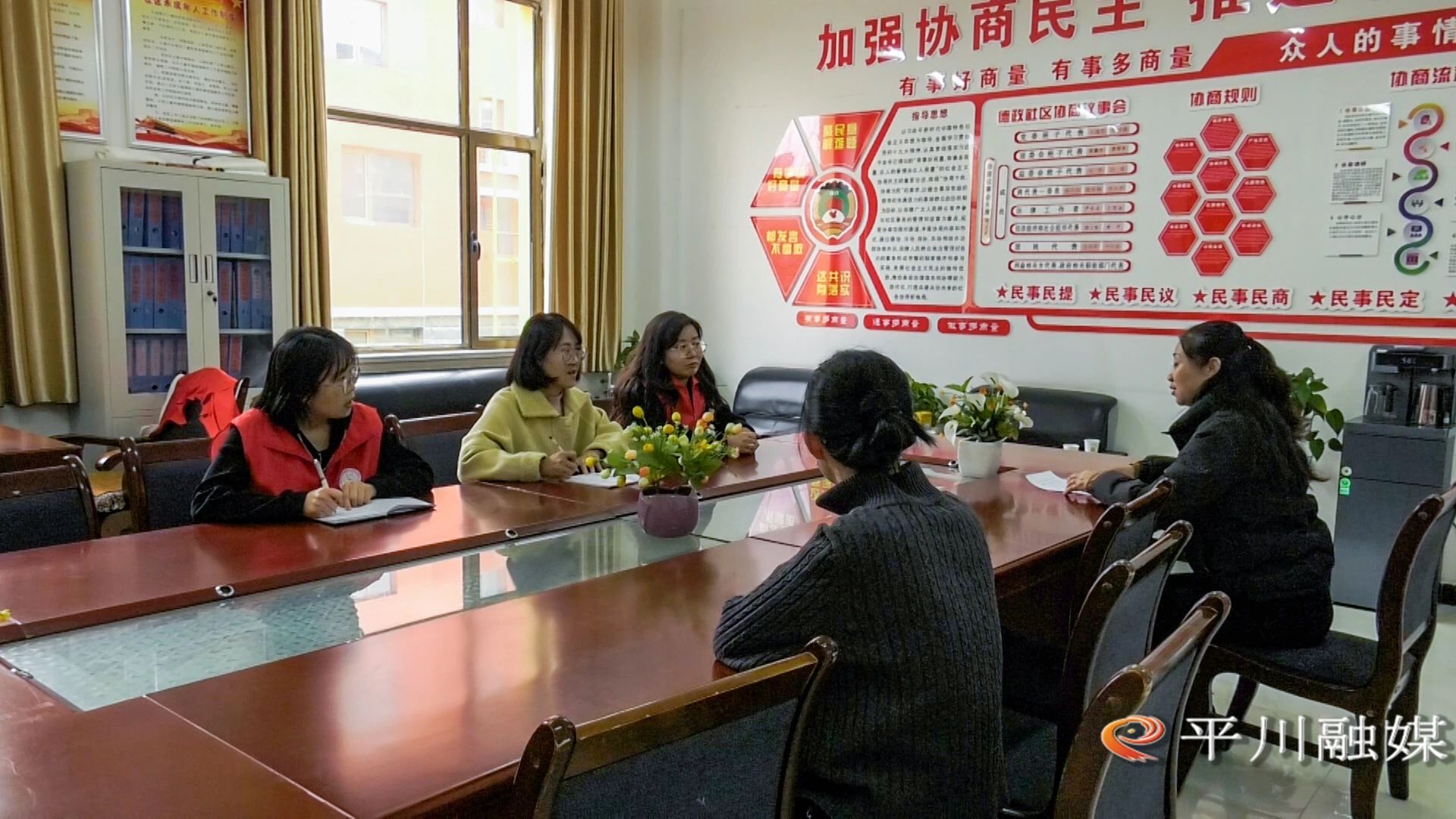 平川区兴平路街道德政社区党委书记卜瑰琴:“德政社区积极践行主动创稳理念,紧紧围绕‘网格化服务、矛盾纠纷排查、社会治安防范’等方面,汇聚网格员力量,结合社区‘小板凳议事会’,通过拉家常形式收集居民意见,摸排矛盾纠纷,充分发挥“调解小分队”优势,协调居民代表、社区工作人员、人民调解员、社会组织等多方力量,提前介入,尽早化解。确保小事不出网格,大事不出社区、矛盾就地化解。”