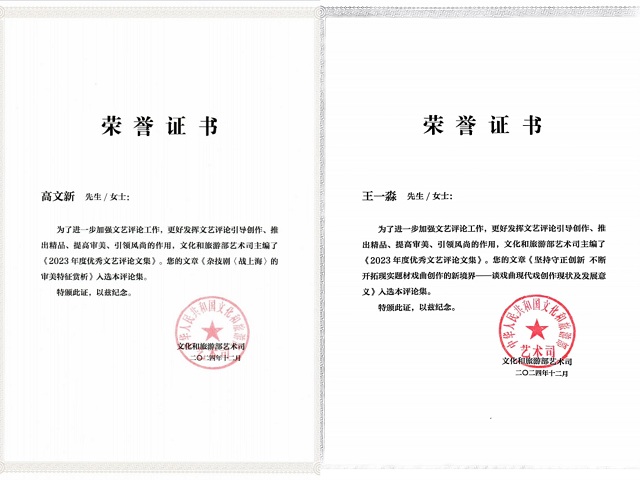 为加强艺术评论工作,展现新时代舞台艺术作品的新高度,彰显新时代文艺评论发展的新风貌,文化和旅游部艺术司发动全国各省(区、市)相关部门推荐2023年度的优秀艺术评论文章,共征集到302篇。经由中国艺术研究院知名专家组成的初评组、复评组严格筛选,最终遴选出86篇评论汇编成册。省文化艺术研究院共有两篇文章被收录,分别为王一淼的《坚持守正创新 不断开拓现实题材戏曲创作的新境界——谈戏曲现代戏创作现状及发展意义》和高文新的《杂技剧〈战上海〉的审美特征赏析》。