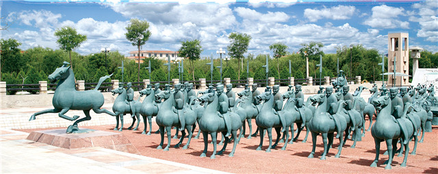 武威之行,雷台当先。这里是中国旅游标志“马踏飞燕”的出土地,高高耸立的铜奔马,飘逸的身姿渲染了腾飞之态,像极了大汉张弛有度的厚重。您可以参观放大6倍的铜车马仪仗俑队伍,感受金戈铁马的庄严肃穆;也可以走进雷台汉墓,探秘古井内钱币被“放大”之谜;在汉文化陈列馆,了解铜奔马背后的传奇故事。