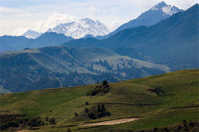 还有那连绵起伏的山脉,山顶白雪与郁郁葱葱的森林相得益彰,绿色草地宁静美丽。整体色调清新宜人,远离城市喧嚣,让人仿佛置身于世外桃源,尽情享受大自然的恩赐。