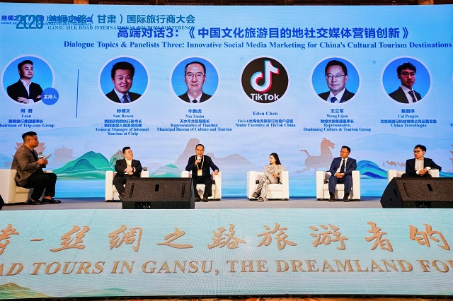 在《文化旅游目的地社交媒体营销创新》研讨环节,嘉宾们分享了各平台或目的地市场增长情况和营销经验,甘肃丝绸之路文旅目的地海外市场营销创意,特别是新媒体营销成功案例。TikTok出海业务旅游行业客户总监Eden Chen揭秘短视频引流秘诀;日本知名导演井上隆史提议以纪录片《丝绸之路》联动甘肃文旅IP,吸引全球Z世代游客,实现文化“破圈”,引发国际旅行商高度关注。