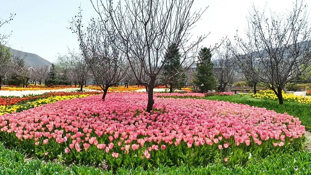 贵清山植物园位于定西市漳县,与国家4A级旅游景区贵清山毗邻,是集休闲娱乐、养生休憩、旅游观光于一体的森林植物园。这里最引人注目的当数郁金香花海,每年4月初,郁金香竞相绽放,将园区装点成五彩斑斓的梦幻世界。