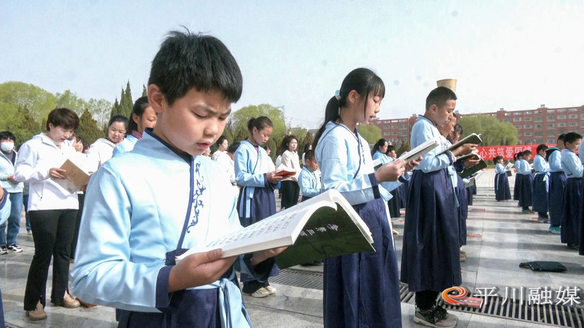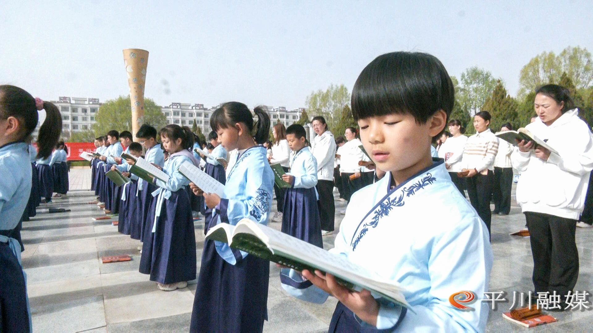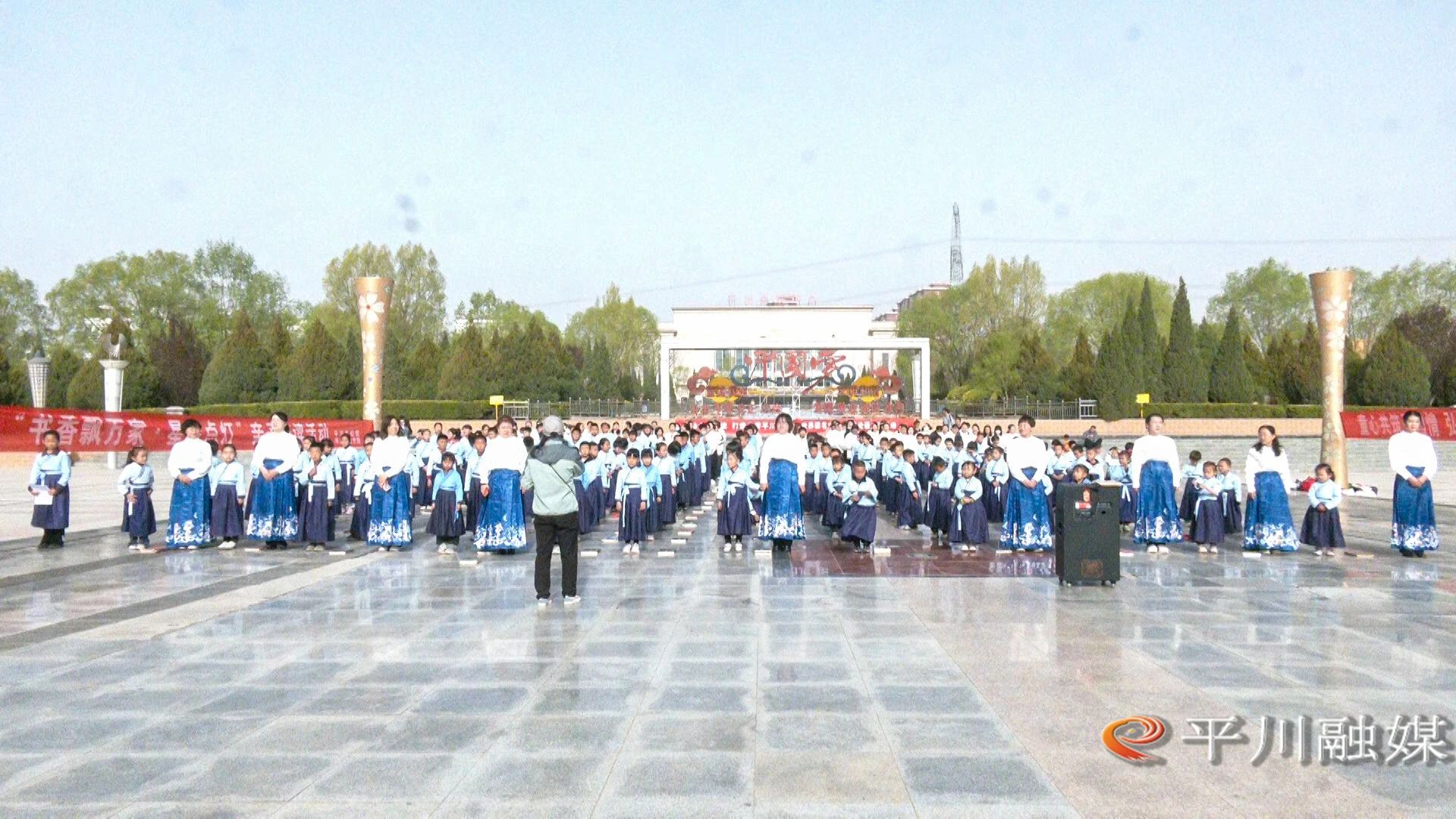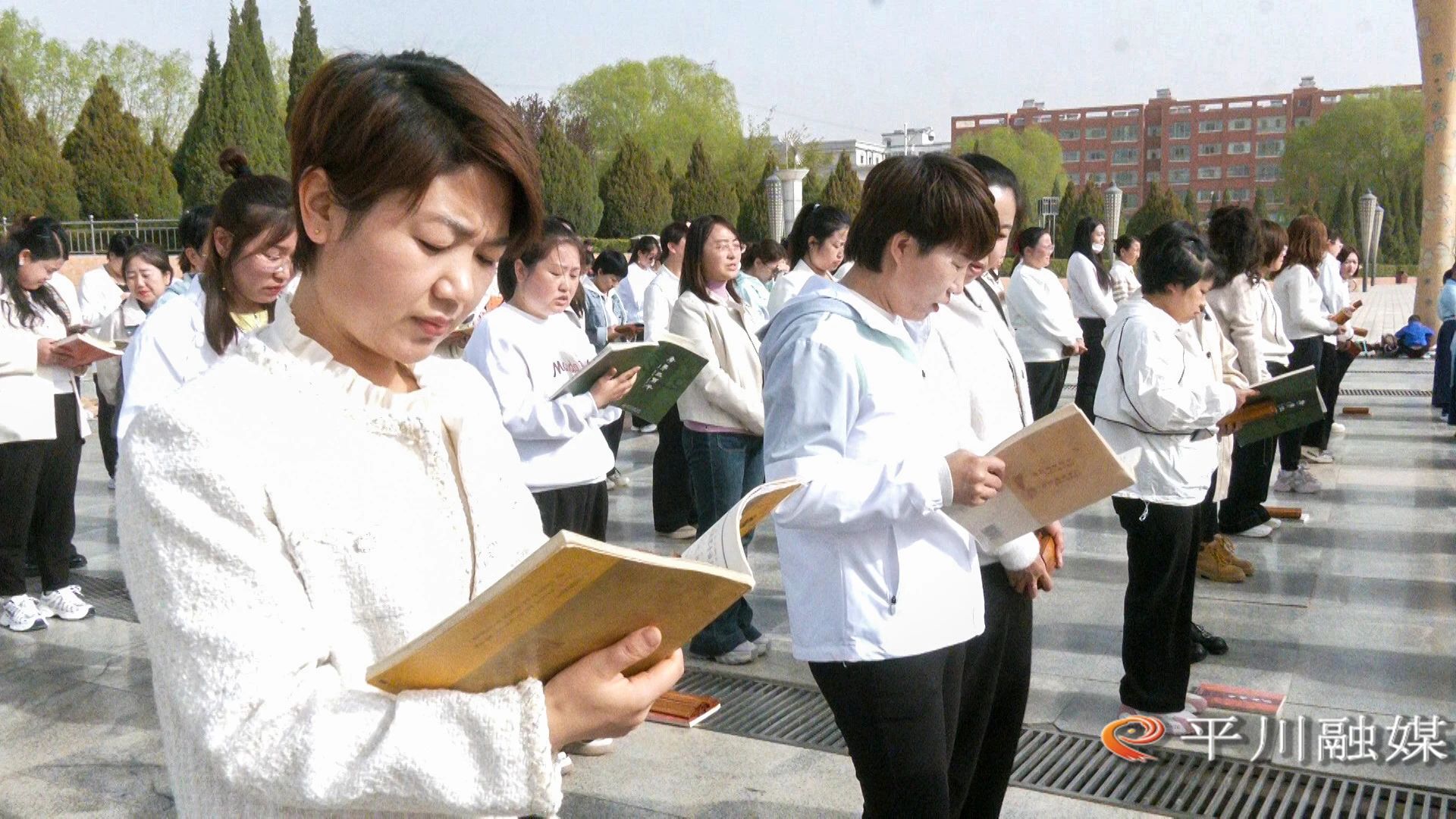 4月19日,平川区图书馆、育才社区新时代文明实践站联合在广场举行“书香伴春日・阅读润民心”为主题的百人读《论语》活动。