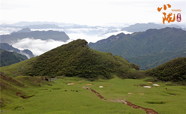 千坝草原也被称为“云中草原”。站在高山之巅北望,沿白龙江而建的武都市区隐约可见。山脊东面及南侧则是高山深谷、层峦叠嶂,尽显山川的壮美。
