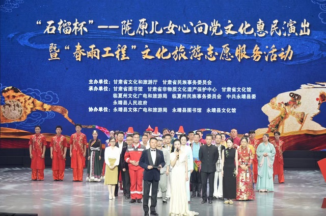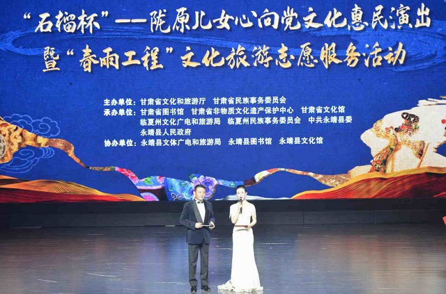 为深入贯彻习近平文化思想及习近平总书记关于加强和改进民族工作重要思想,以文化沁润有形有感有效铸牢中华民族共同体意识,4月25日晚,省文旅厅在永靖县举办了“石榴杯”——陇原儿女心向党文化惠民演出暨“春雨工程”文化旅游志愿服务活动。