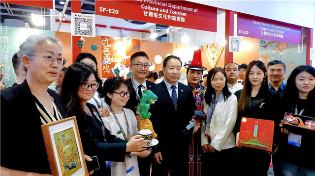 展会现场,除展出各具特色的文创产品外,甘肃文博信息产业发展有限公司、敦煌礼物文化有限公司、敦煌九色鹿鸣文化产业有限公司等多家企业,还通过现场推介、座谈交流、洽谈合作等多种形式,介绍甘肃丰富多彩的文化资源、潜力无限的文化产业市场以及陇原文创IP的创新与商业价值。
