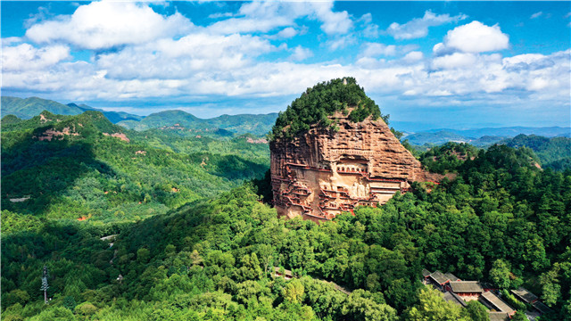 始建于十六国后秦时期的麦积山石窟,是中国四大石窟之一,历经10余个朝代的开凿和修缮,现存窟龛221个、泥塑及石雕造像3938件、壁画千余平方米,为各民族文化交融、东西方文明交流互鉴留下珍贵印迹。2014年,石窟作为“丝绸之路:长安—天山廊道的路网”的组成部分,被列入《世界遗产名录》。