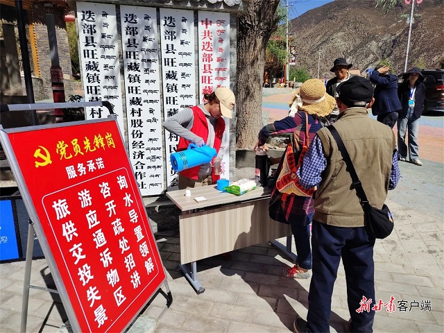 迭部县党员干部为游客暖心服务。