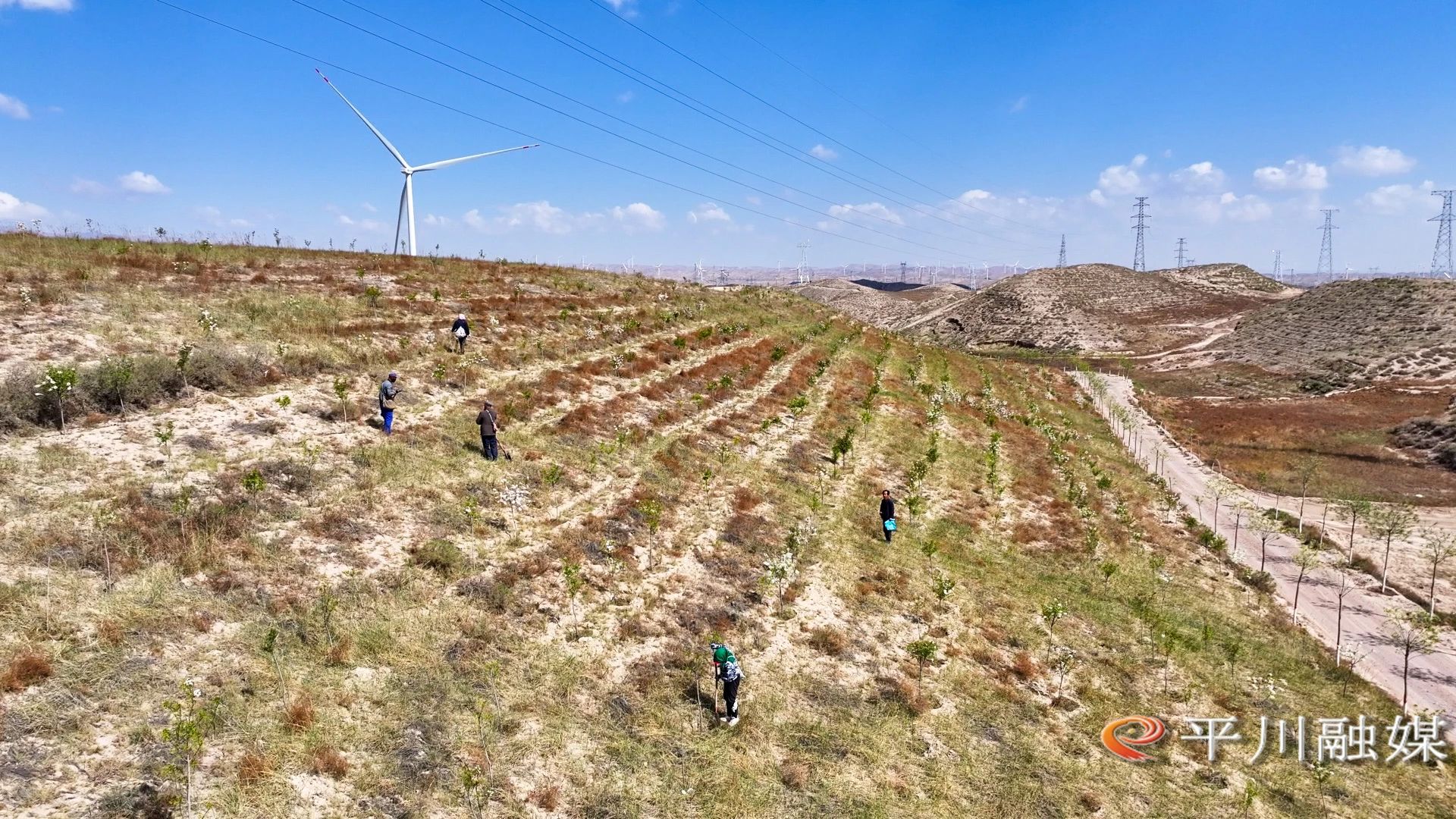白银市平川区采煤沉陷区生态修复工程王家山片区负责人张志鹏:“我负责两个片区9000多亩的文冠果管护工作,平均每天山上有30-40人干活,我们这个管护工作持续到冬季,然后进入到防火阶段。”