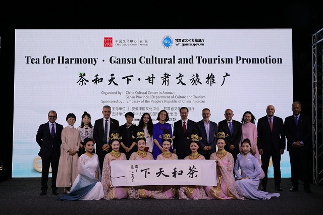 5月18日至21日,由甘肃省文化和旅游厅与安曼中国文化中心2025年部省合作的重点项目“茶和天下”·雅集活动在约旦安曼成功举办。开幕式活动当日,中国驻约旦大使陈传东、甘肃省文化和旅游厅副厅长龚佳佳和约旦文化部秘书长尼达尔·艾斯拉发表致辞。中国驻约旦使馆文化参赞兼安曼中国文化中心主任史未、约旦王室雷姆·阿里王妃和加利拉·宾特·阿里公主,以及约旦旅游促进局局长阿拉比亚特、约旦皇家电影委员会主席巴克利等来自约旦文化机构、旅游企业、艺术、教育、商贸领域的400余位嘉宾出席活动开幕式。