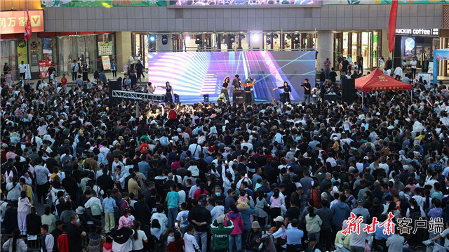 随着夜色加深,电音狂欢将气氛推向高潮。“苍穹节拍・诗电交响”“酒泉鼓楼国潮电音狂欢节”上,专业DJ与灯光团队打造沉浸式视听体验,霓虹光影与鼓楼古韵碰撞,动感节奏点燃全场,观众随音浪舞动,热烈的氛围冲破夜空。