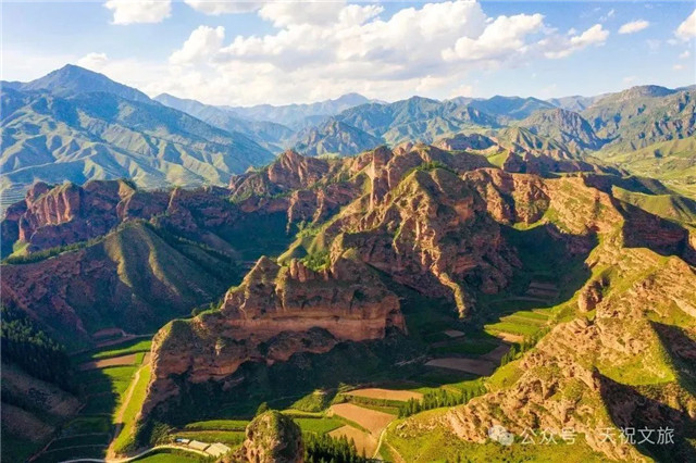 在天祝隐藏着一处地质奇观——本康丹霞。这里的红色砂砾岩经过亿万年风雨侵蚀,形成了千姿百态的丹霞地貌。