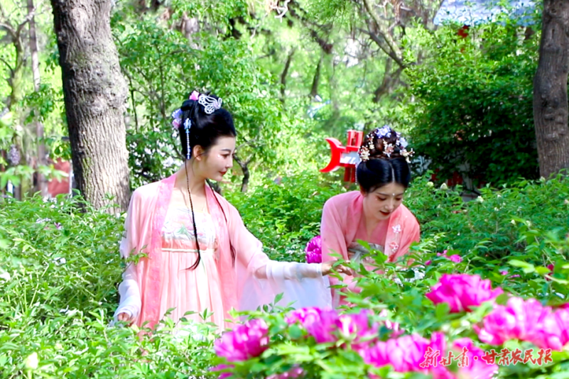 游客在临夏市人民红园赏牡丹。新甘肃·甘肃农民报通讯员 李禹含