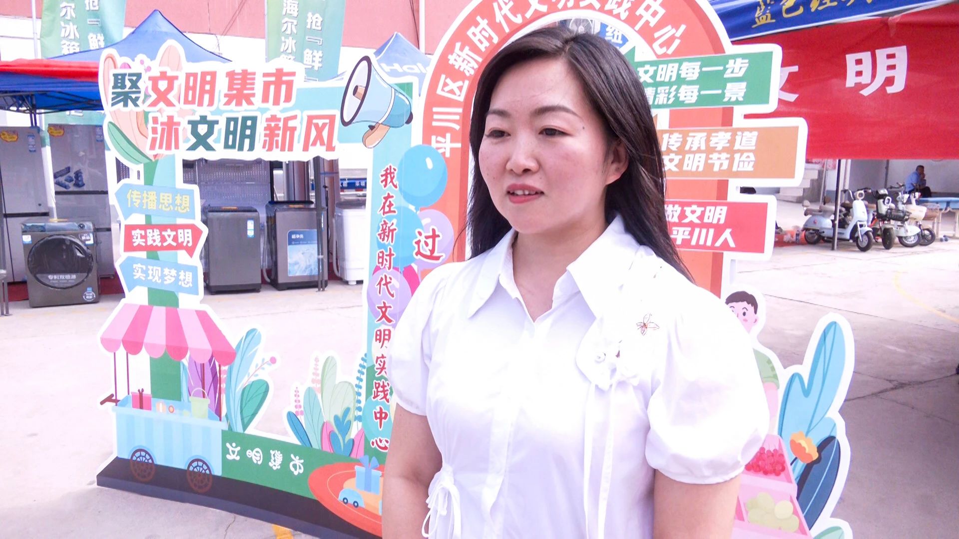 平川区新时代文明实践中心副主任孙文娟:“此次文明集市涵盖了政策宣传、文化服务、科普教育、法律咨询、健康义诊、爱心理发、家电下乡等多个领域,就是为了满足群众多样化的需求,为大家提供一个便捷高效的一站式文明实践平台,让广大群众在参与集市的过程中,感受到文明的力量,提升文明素养,共享文明成果。”