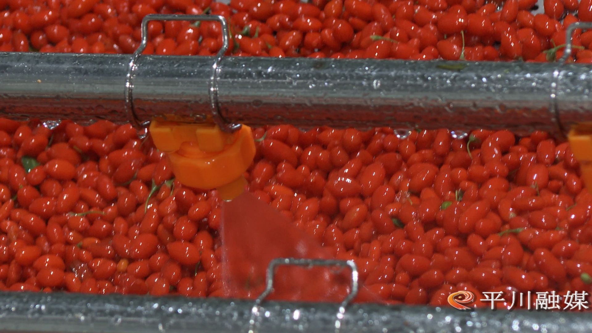 甘肃百杞元生物科技有限公司质管部主任郭振华:“我公司生产的鲜枸杞原浆,采用NFC非浓缩还原工艺,从采摘到榨汁,经清洗、沥水、破碎、打浆、研磨、均质、杀菌、无菌灌装等工艺加工制成,6小时内急速完成,活性和营养物质能够最大程度保留。”