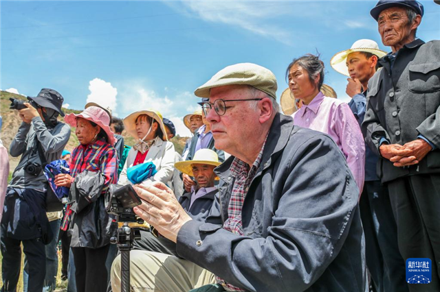 夏日的风拂过青藏高原东部边缘,染绿了甘肃省定西市岷县的原野山川。村民们趁着农闲,涌向草深花浓的森林草地或洮河岸边,开启一场场乡村草地音乐盛会——“花儿会”。今年岷县的“花儿会”上,迎来了一名特殊的“花儿”故人:69岁的荷兰莱顿大学客座教授、音乐人类学家高文厚。他手持DV,专注地采录着“花儿”歌手精彩的对唱瞬间。