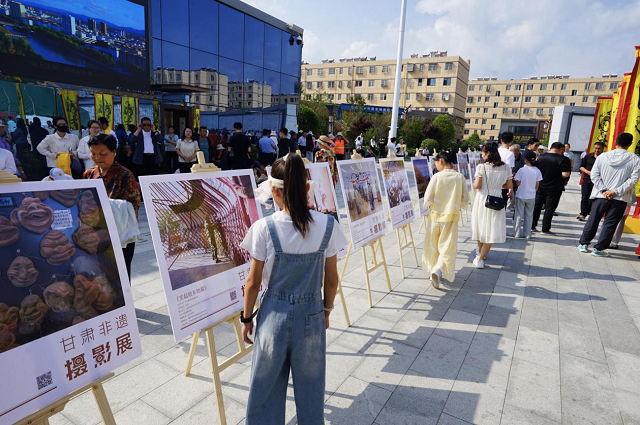 活动分为两大板块,互为补充、相得益彰。在“非遗精品展示”板块,来自全省7个市州的34家非遗工坊进行了展示。内容包括传统美术、传统技艺、传统医药等类型,既有静宁烧鸡、天水呱呱等地方特色美食,又有岐黄正骨术等疗法,更有临夏泥塑、洮砚、成县香陈醋、“靛坪大曲”、高桥黄酒、成州面塑和甘肃省博物馆文创、清水县文创等产品,广受群众喜爱。在“非遗保护展示”板块,精选了2023年到2025年间,国家级(省级)代表性项目展示展演、非遗传承人手把手教授技艺、走进社区校园传播守护非遗等40幅活动记录照片,既是非遗项目传承保护的珍贵档案,也是对工匠精神、生活智慧和人文情怀的深度解码。在光影定格间,观众得以穿越时空,直观感受非遗传承人的执着坚守和传统工艺的精妙绝伦。