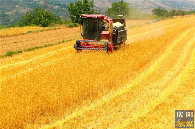 庆阳市镇原县金黄梯田麦收忙