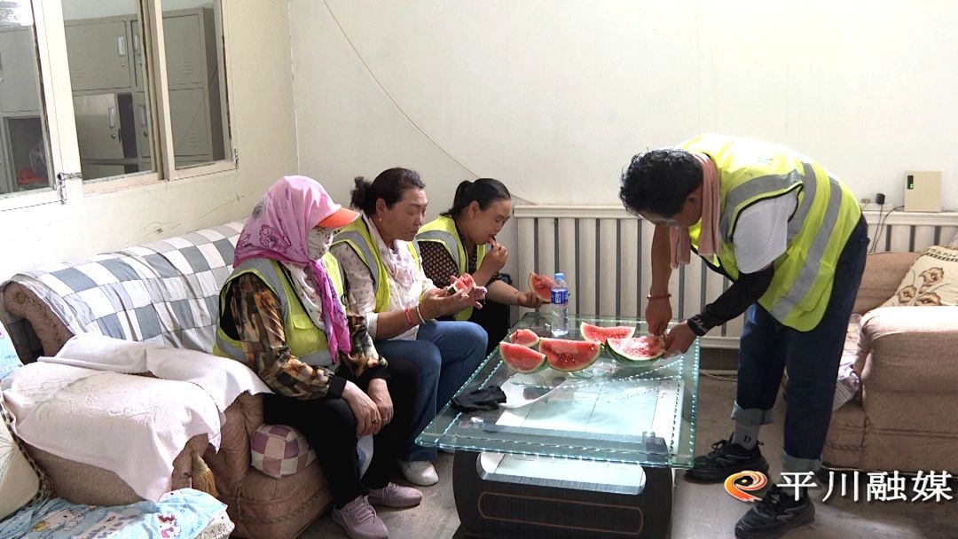 平川区长征广宇生活服务有限责任公司兴平片区副班长陈亚莉:“在为环卫工人分发完西瓜以后,我们在爱心驿站存放了部分西瓜,以供环卫工人在休息的时候消暑解渴。”