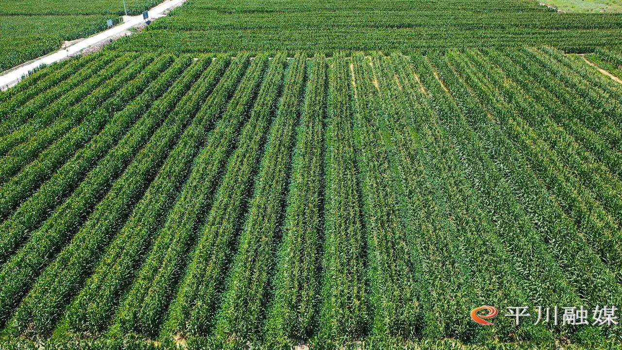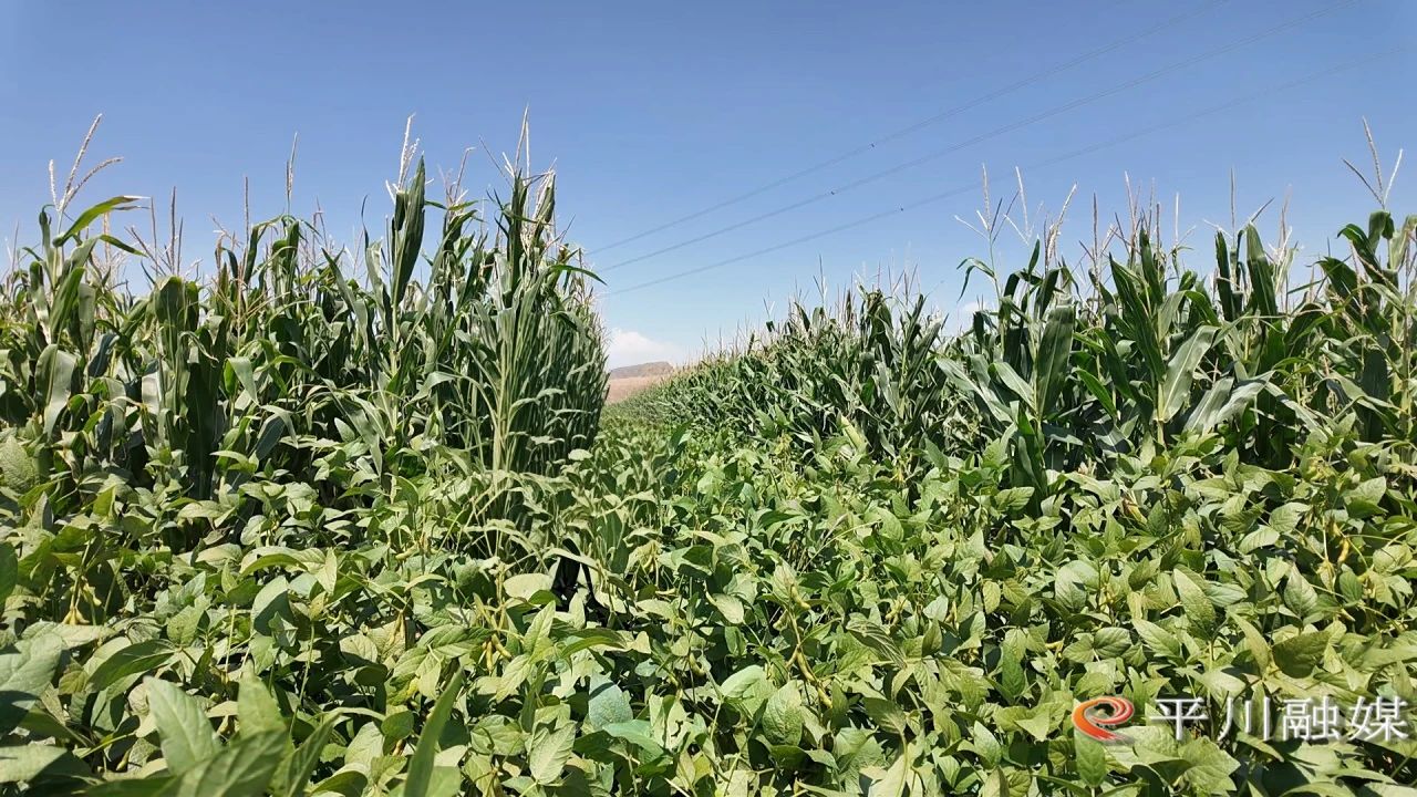 平川区瑞亨丰农机种植农民专业合作社是宝积镇小川村另一家种植合作社,流转整合村内土地3400亩,种植大豆玉米复合种植面积达1500亩,配套净作玉米1500亩,小麦200亩及其他作物200亩。走进大豆玉米复合种植基地,一行行玉米株高挺拔,叶片舒展,其间穿插的大豆则枝繁叶茂,豆荚饱满。作为平川区推广的新型种植模式,大豆玉米带状复合种植不仅提高了土地利用率和产出效益,更让农户在家门口找到了务工机会,从播种、田间管理到后期采收,基地里常年有村民忙碌的身影,产业的活力正沿着田垄不断延伸。