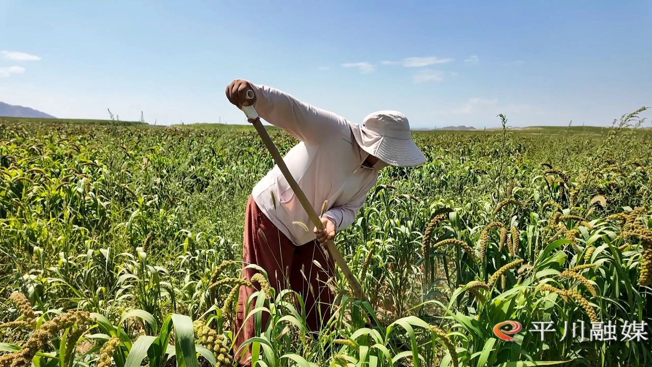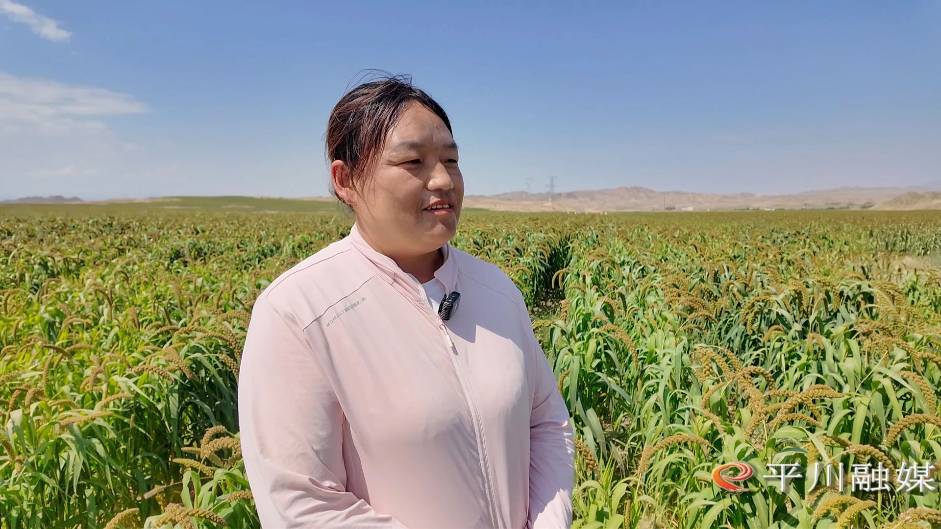 平川区铭瑞农业专业合作社负责人任雪丽:“我们今年流转了3400多亩地,2200亩地的油葵,1200亩地的谷子,种的品种是嘉瑞1号。我们通过这两年的种植改良,今年突破了坡地种植技术,实现了‘水肥一体化’管理,通过订单模式收购,今年的谷子长势也比往年要好,价格也比往年要高。”
