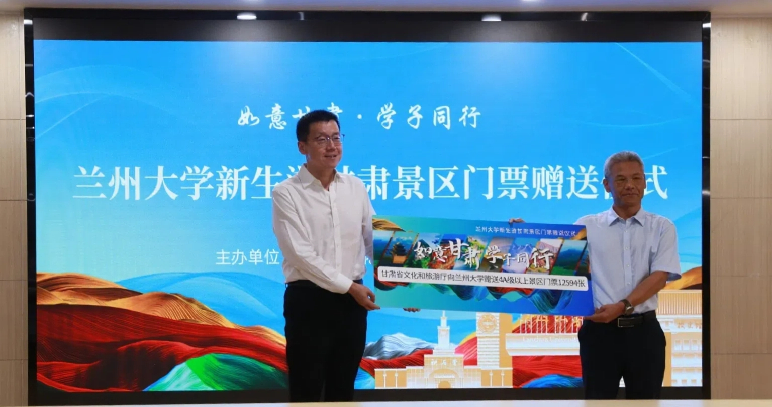 正值兰州大学迎来2025新生之际,一份装有甘肃大美山河的“青春盲盒”被送至兰州大学新生手中。8月27日上午,“如意甘肃·学子同行”兰大新生游甘肃景区门票赠送仪式在兰州大学(城关校区)成功举行。