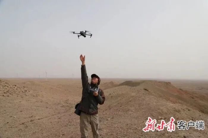 科技创新为文物保护巡查和勘察注入了新活力。在金川区的广袤戈壁滩上,文物保护工作人员操作无人机,对长城烽火台遗址开展航拍巡查。