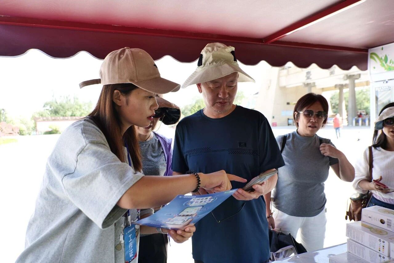 在雷台景区除了实地感受“马踏飞燕”和铜车马仪仗俑的气宇轩昂,“一部手机游甘肃”推广团队还在此开展线下推广。工作人员向过往游客及参观群众分发宣传资料,详细介绍升级后的“一码游甘肃”平台所具备的景区门票、酒店预订、特产购物等功能,并赠送定制礼品,引导观众现场扫码体验。