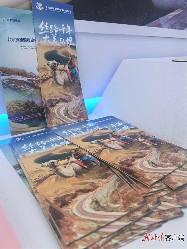服贸会甘肃馆内展台上,摆放着甘肃文旅资源宣传推介册。