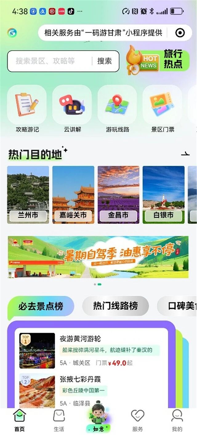“一部手机游甘肃”平台页面