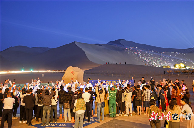 9月21日晚,第八届敦煌文博会“相约敦煌”国际文化交流演出“快闪”在鸣沙山月牙泉举行。
