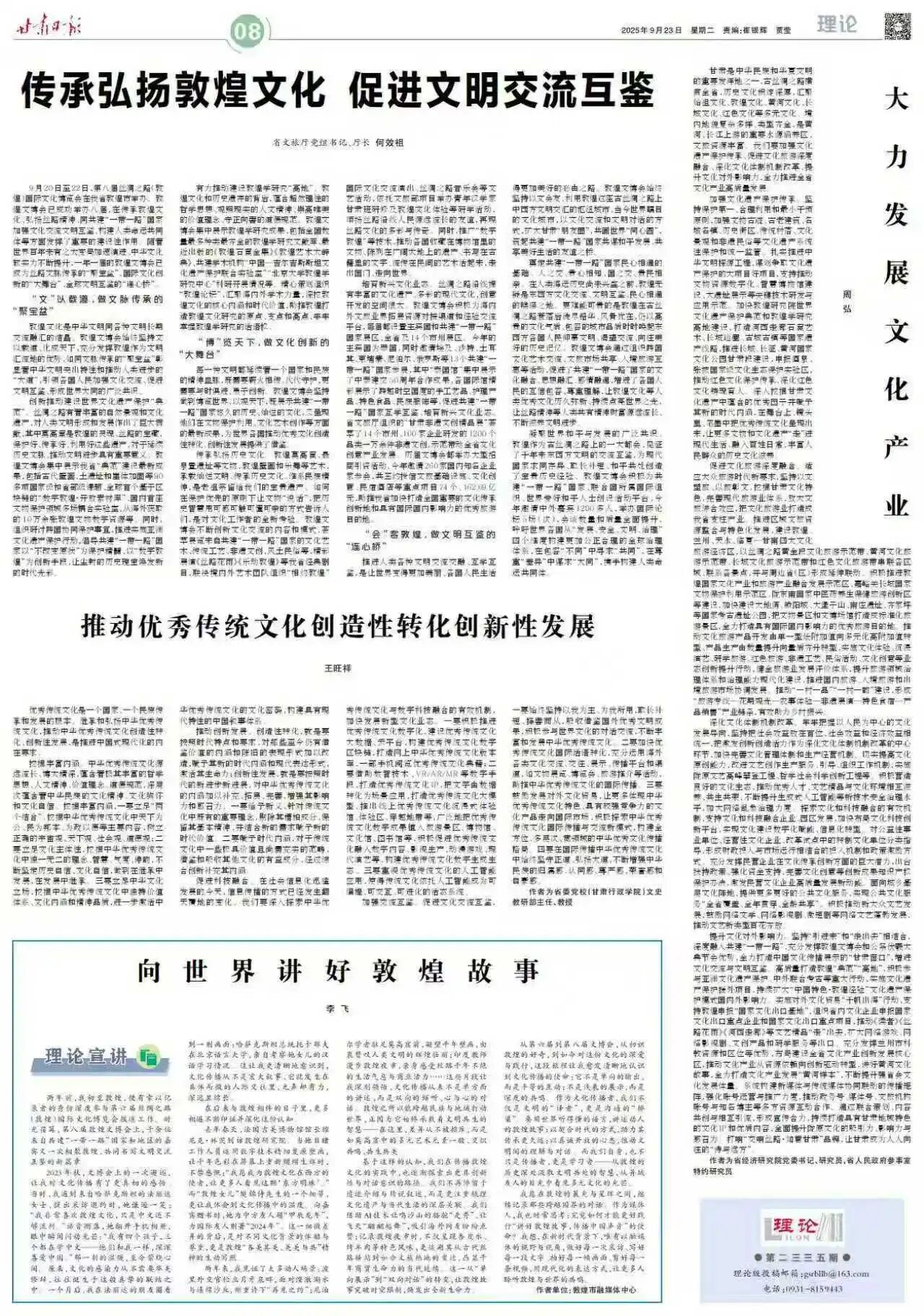 有力推动建设敦煌学研究“高地”。敦煌文化和历史遗存的背后,蕴含超然理性的哲学思想、观照现实的人文精神、崇高唯美的价值理念、守正向善的道德规范。敦煌文博会集中展示敦煌学研究成果,包括全国数量最多种类最齐全的敦煌学研究文献库、最近出版的《敦煌石窟全集》《敦煌艺术大辞典》、共建学术机构“中国—吉尔吉斯斯坦文化遗产保护联合实验室”“北京大学敦煌学研究中心”科研开展情况等。精心策划组织“敦煌论坛”,汇聚海内外学术力量,深挖敦煌文化的核心内涵和时代价值,助推敦煌打造敦煌文化研究的原点、支点和高点,牢牢掌握敦煌学研究的话语权。