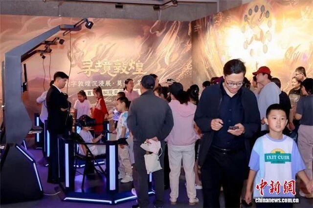 9月21日至22日,观众在敦煌文博会展区体验敦煌主题沉浸展。闫姣 摄