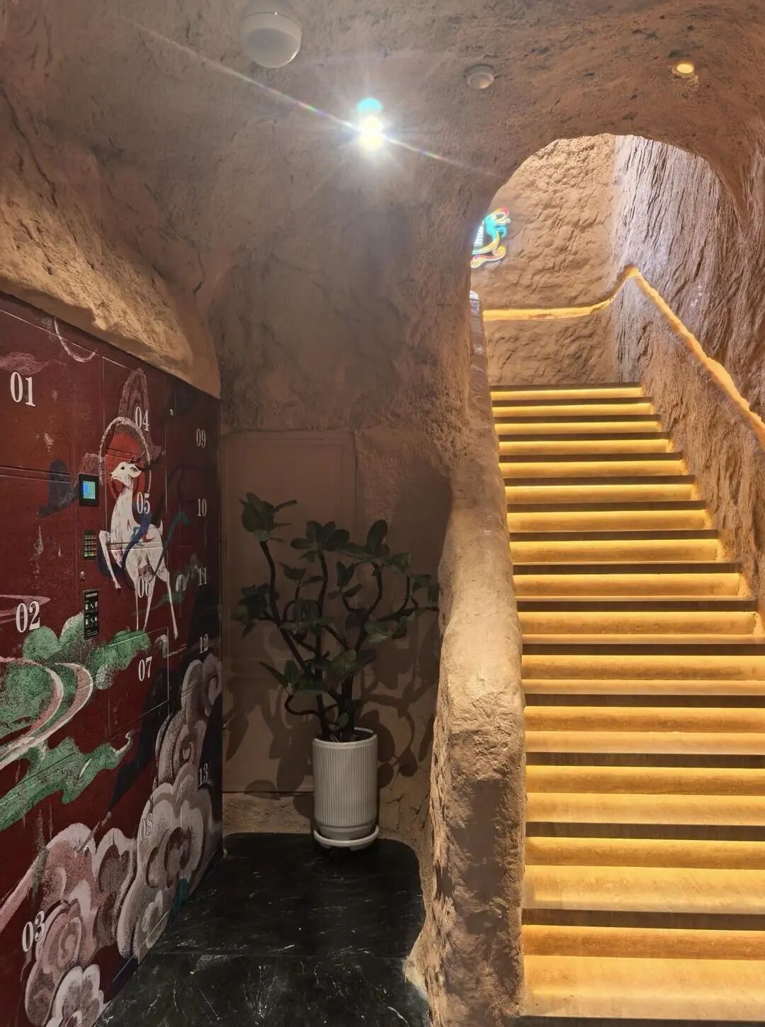 据此前报道,一位甘肃兰州的宝妈发帖表示,自己当时夜市找厕所时,还以为误闯了某个未开放的石窟,推门进去才发现竟然是一个卫生间,头顶是星空顶仿藻井,墙上飞天壁画会反光,连马桶都是全自动的,洗手台瓷砖细看全是敦煌纹样。