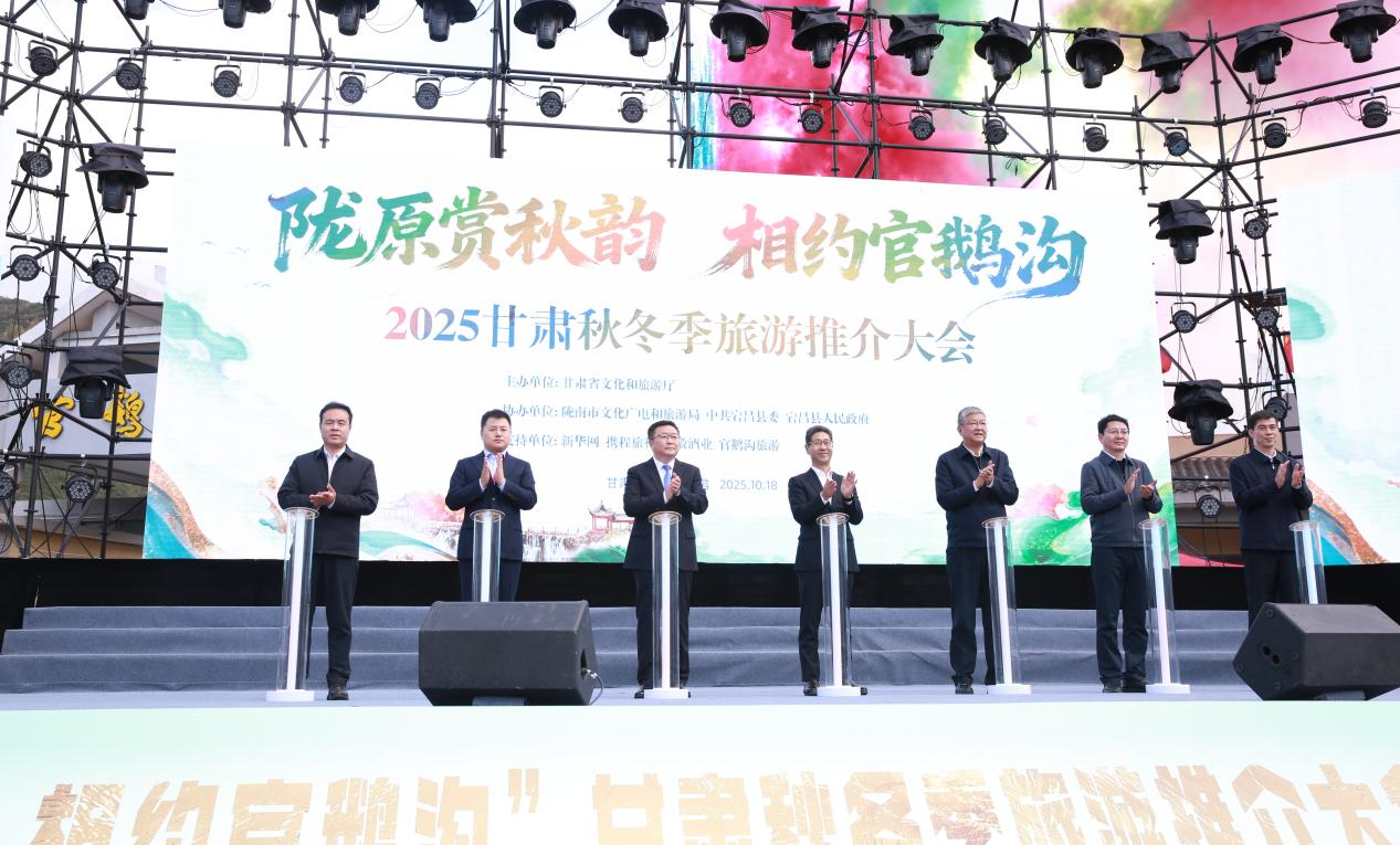 10月18日,“陇原赏秋韵·相约官鹅沟”2025甘肃秋冬季旅游推介大会在陇南宕昌县官鹅沟大景区隆重举办。本次大会由省文旅厅主办,陇南市文广旅局及宕昌县委县政府协办,以展示秋冬文旅魅力、深化区域合作、激活旅游市场为目标,吸引16省1500余名旅行商、达人及媒体参与。活动通过多平台直播吸引超2634万人次观看,成为一场集“赏秋韵、品文化、话合作”于一体的文旅盛宴。
