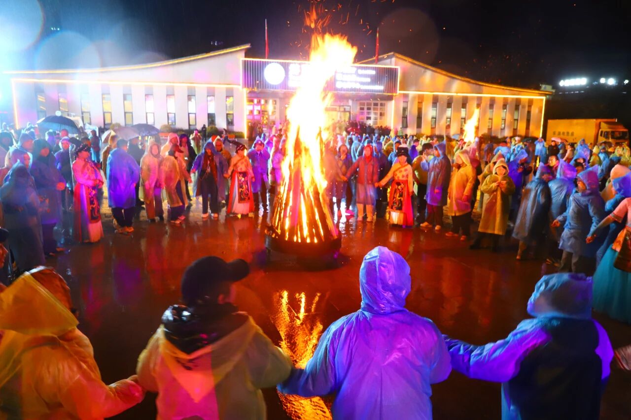 当晚会进入高潮,景区广场中央的篝火被点燃,跳跃的火焰瞬间聚拢起全场目光。在当地文艺表演者的带领下,旅行商代表与群众手拉手围成圆圈,跟着《娥嫚》的节奏起舞,裙摆与衣角在火光中划出优美弧线。火光映照下,大家的笑容与远处官鹅沟的秋山剪影相映成趣,篝火旁的热闹与官鹅沟的秋景一样动人,与此同时,新一轮烟花再度升空,五彩光焰在层林尽染的山峦背景下绽放,将夜空装点得格外璀璨,为这场文旅盛宴增添了浪漫氛围。“这才是西北秋夜该有的模样!”来自四川的旅行社负责人一边舞动一边感叹,火光映红了他的笑容。