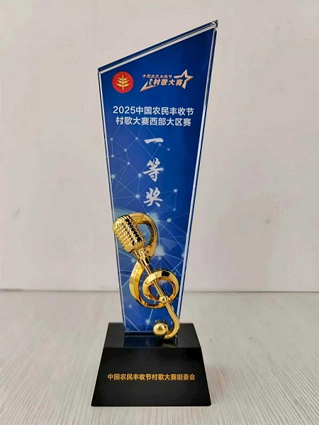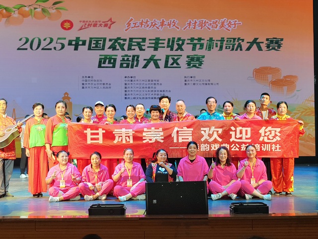 近日,由中国农民杂志社、重庆市农业农村委员会、重庆市万州区人民政府主办的2025中国农民丰收节村歌大赛西部大区赛在重庆万州落幕。甘肃省选送的非遗说唱节目《农民的日子美扎了》脱颖而出,获得一等奖。