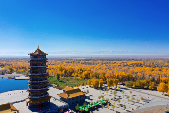 参 观 路 线 景区大门(起点)→金色田园花海→沙枣林观光休闲区→野生胡杨林→沙漠娱乐体验区→胡杨楼→怪树林→烽燧瞭望台→胡杨美术馆→胡杨村→金波湖核心游览区(终点)