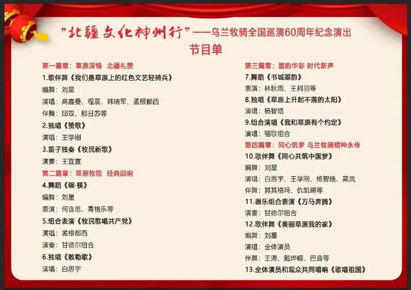 诚邀兰州市民及四方游客届时齐聚石佛沟国家森林公园法显广场,在秋日美景中,共同享受这场由乌海乌兰牧骑带来的高品质文艺演出,体验一次难忘的艺术之旅!