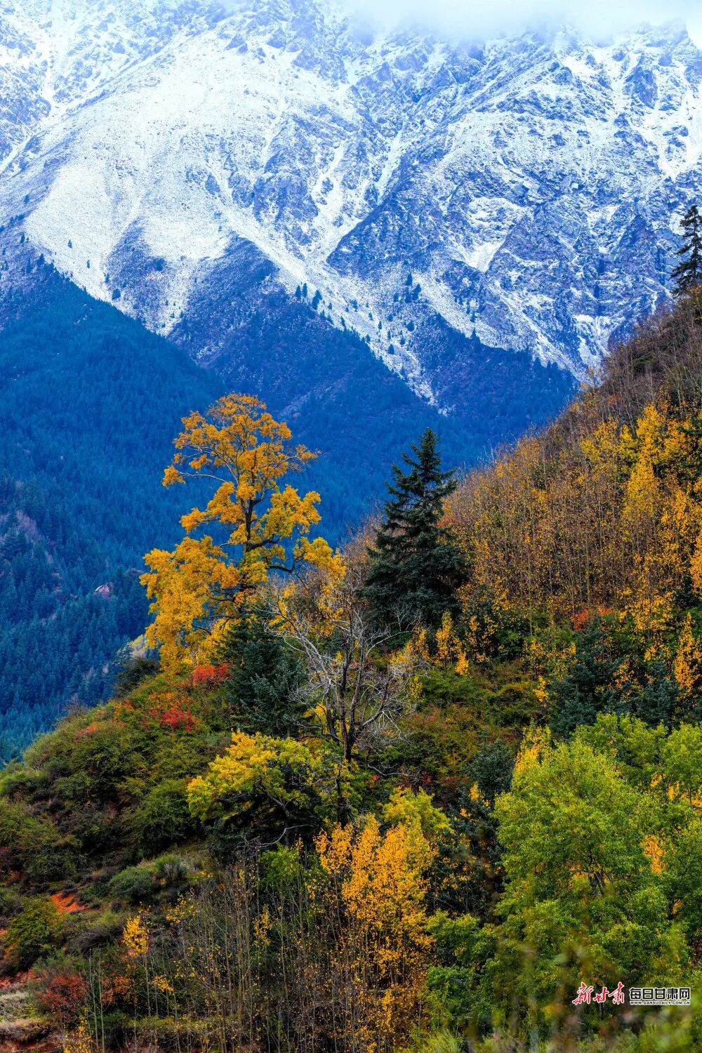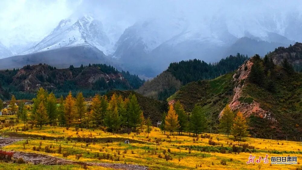 金秋与冬雪在甘肃同框了,氛围感拉满~
