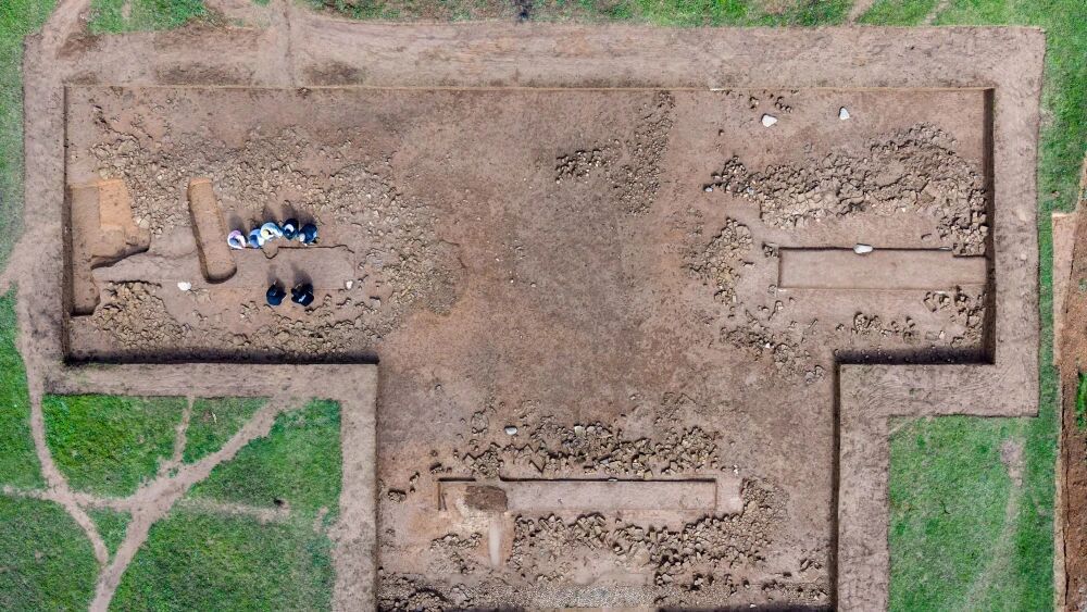 2024年夏季,考古工作人员在遗址西侧第二与第三组门塾建筑之间,发现了一处由两个对称阙台基址构成的早期阙门遗迹。