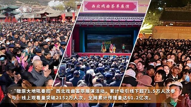 今年3月16日至29日,由中国戏曲表演学会、甘肃省文化和旅游厅、天水市人民政府联合主办,陕西、宁夏、青海、新疆等省区文化和旅游厅及新疆生产建设兵团文化体育广电和旅游局共同支持的“跟着艺术游甘肃”西北戏曲荟萃展演活动在天水市伏羲广场举行。该项展演活动作为“跟着艺术游甘肃”文旅融合艺术创新系列活动重要组成部分,由西北秦腔汇演、西北地方剧种折子戏展演、戏迷争霸赛和戏曲快闪巡游四个板块组成。作为西北五省区历史上规模最大的戏曲展演活动,主办方充分结合戏曲观众群体特点,首次实现所有演出全程户外化呈现,累计吸引线下超59.2万人次参与,线上观看量突破2152万人次,其中线下近三成观众来自陕、宁、青、新等省外地区。这场以“传统与创新交融、艺术与文旅共生”为核心理念的盛会,既是践行党的二十届三中全会《决议》关于“建立优质文化资源直达基层机制”精神的生动实践,也是落实习近平总书记关于“优化文化产品和服务供给,以文化赋能经济社会发展”战略部署的创新举措,为西北地区文旅融合高质量发展注入强劲动能。