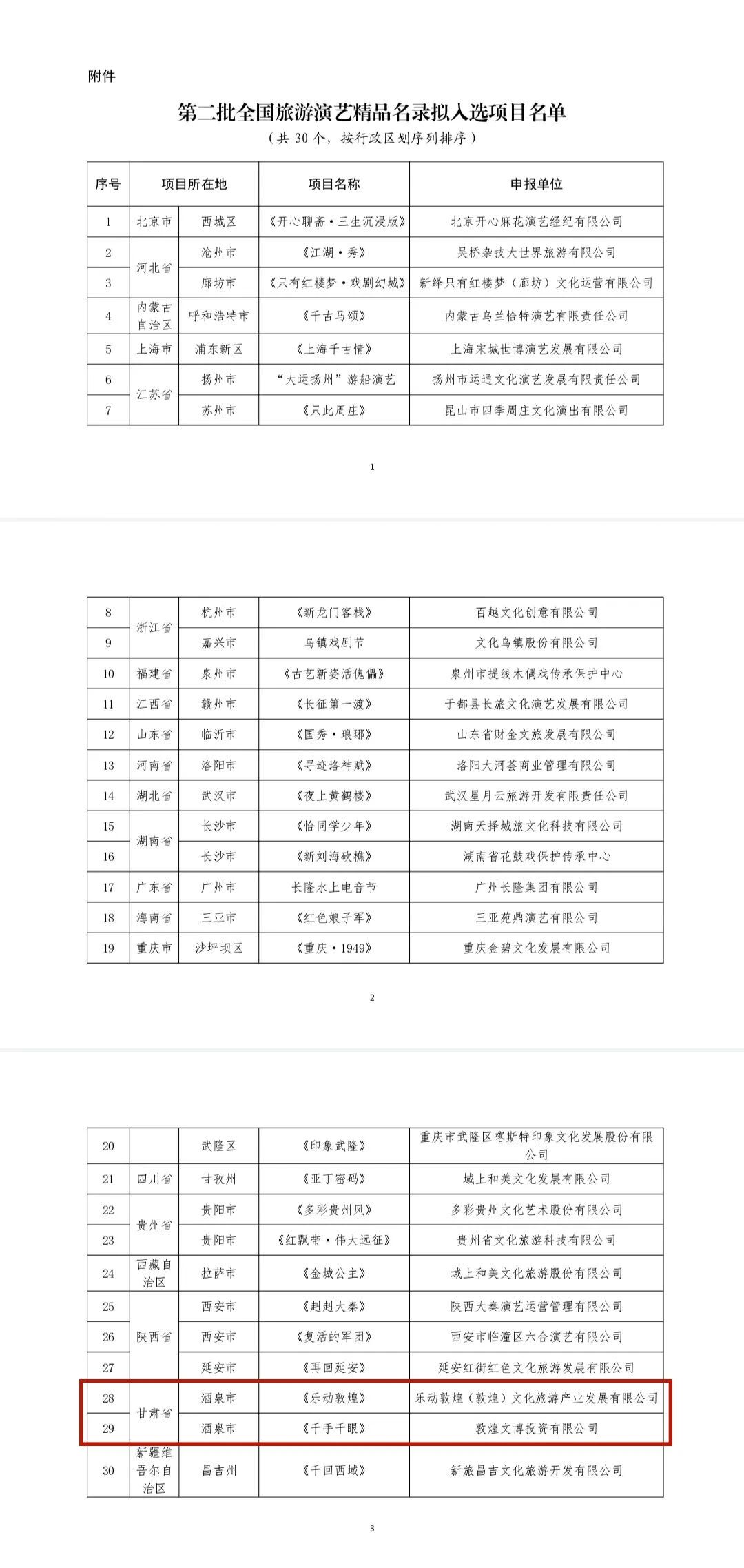 第二批全国旅游演艺精品名录拟入选项目名单公示,甘肃两个项目成功入选