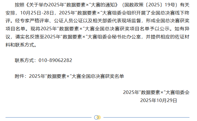 2025年“数据要素×”大赛全国总决赛获奖项目名单发布,甘肃一项目荣获文化旅游赛道二等奖!