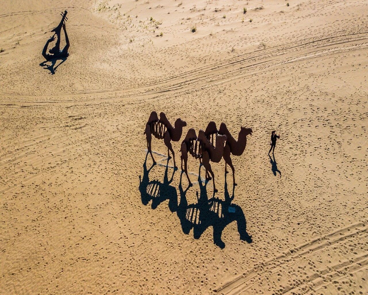 苏武沙漠景区则展现着另一种极致的美。沙漠雕塑国际创作营,让这片荒芜之地焕发着艺术生机。一件件雕塑作品耸立在沙丘之上,与浩瀚的沙漠、广袤的蓝天相映,展现出生态的强大张力。