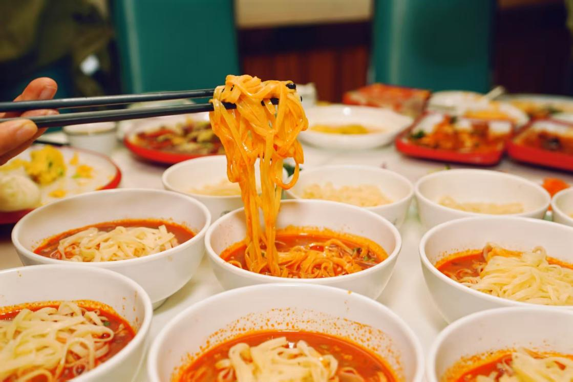 陇东南的烟火气,藏在两碗各有风味的手工面里。灵台酸汤面细如发丝、口感绵软,清亮的酸汤裹挟着纤细面条,配上鲜香浇头,一口下去酸辣开胃,满是地道陇东滋味;庆阳手工面则以弹牙劲道见长,从和面、擀面到切面,每一步都是老手艺的传承,指尖揉捻间不仅赋予面条十足嚼劲,更沉淀着陇东民俗的温暖质感。