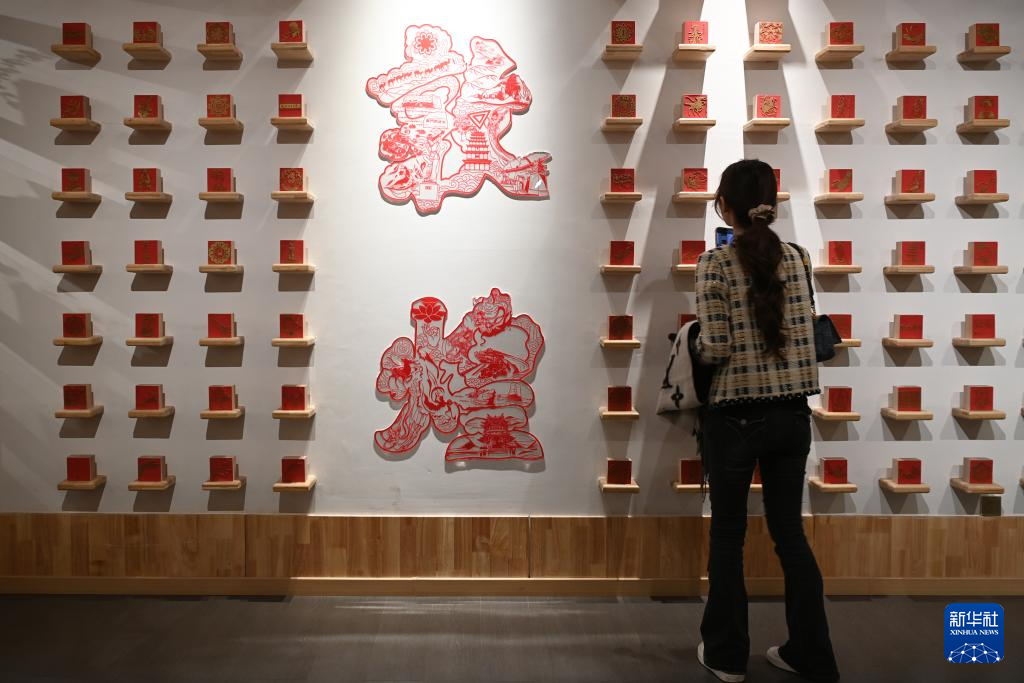 在这里,600余种、7大类印章琳琅满目,游客可以亲身体验版画印、数字喷印、套章印等十余种印刷方式。其中,套章印尤其受青睐,通过4至7种不同颜色印章的搭配,可以呈现赭红、石绿等丰富的敦煌色彩。形形色色的印章还可拓在卷轴上,成为融合古典与现代的创意礼品。