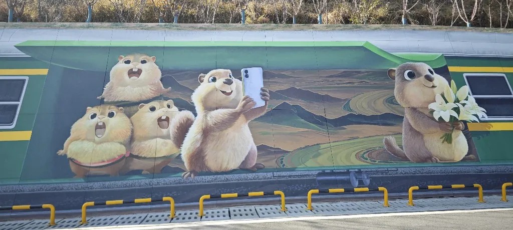 墙绘的视觉表达尤为引人注目,“0931号”蒸汽火车墙绘缓缓亮起,车头泛出暖光,串联起瓜果、土拨鼠等Q版风物元素,宛如一列承载城市记忆的“文化专列”,驶过人们的乡愁,也打开游客了解兰州的窗口。另一处“牦牛烫头”墙绘则以幽默创意出圈:拟人化的牦牛坐在理发椅上,身旁剪刀、水壶环绕,头顶卷发蓬松,憨态可掬的形象引得路人频频驻足拍照,笑声不断。