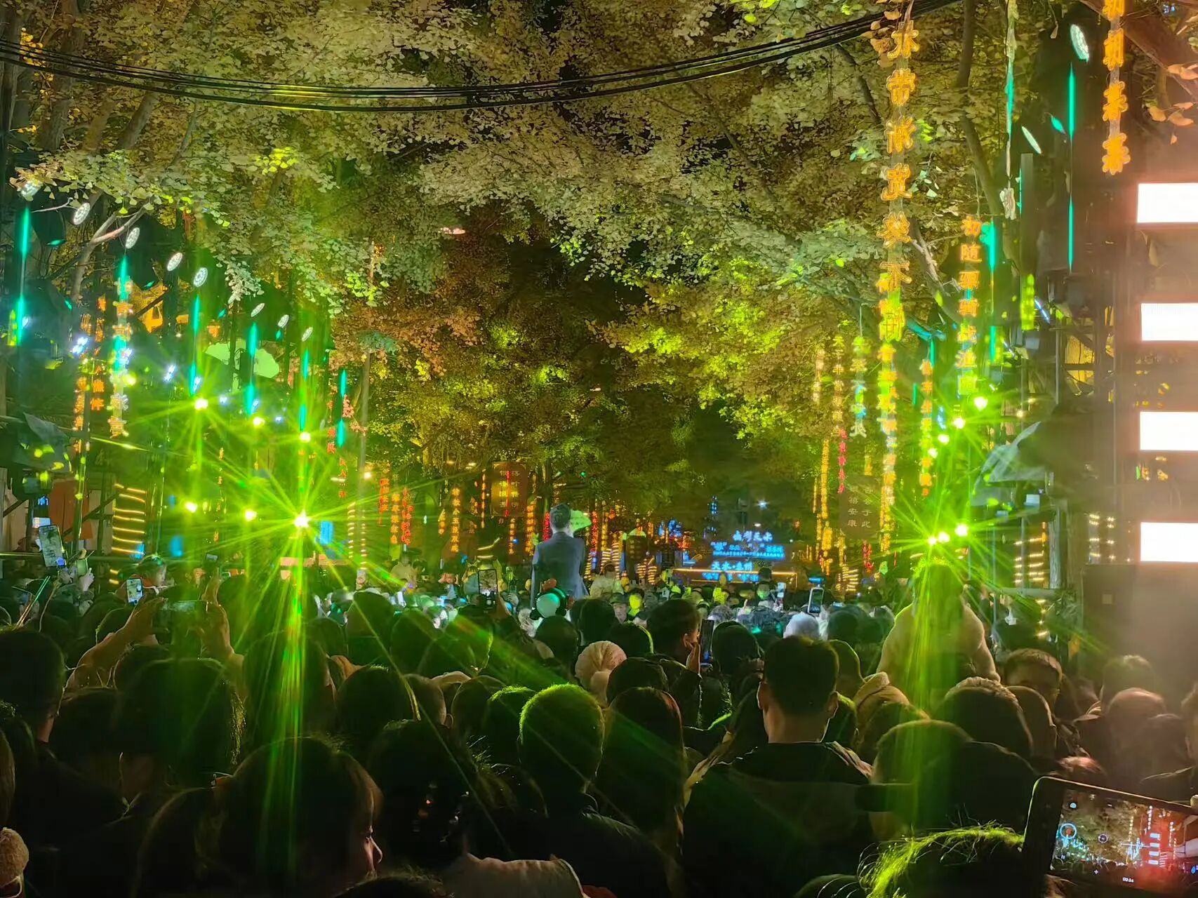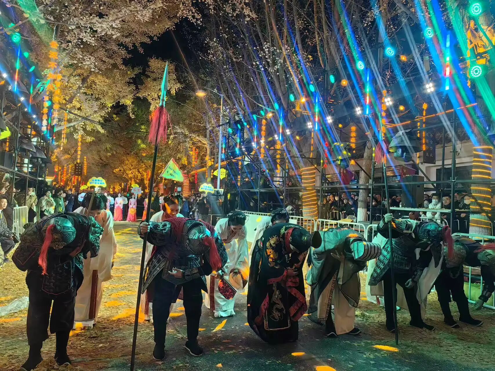 活动深度挖掘本地文化资源,并以现代方式进行创新表达。在金色银杏与璀璨灯影中,悬挂古诗词牌布景,体现“诗意秦州”,活动中以诗歌朗诵、古琴书画等形式,复现了杜甫《秦州杂诗》等秦州深厚的历史文脉;依托“黄金大道”网红街舞台,将伏羲八卦鼓、秦州小曲、秦腔等非遗与传统艺术与红色经典、流行乐舞同台呈现,展现了秦州从古至今的文化绵延,展现“人文秦州”。“唱响秦州”篇章联名“衔月阁”IP,打造特色打卡点与露天音乐场,使充满诗意意境的黄金大道充满活力,洋溢青春的律动,展现了秦州现代、开放的城市气质,实现了传统文化与现代表达的完美对话。